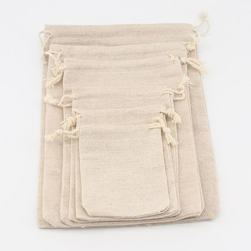 Eco-friendly linen drawstring bags perfect for weddings, parties, or everyday home use. Ideal for gifting, organizing, or storing kitchen items and accessories neatly