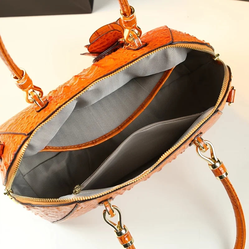 A fashionable and colorful alligator-pattern women’s handbag with a retro crocodile design. Made from soft leather with tote, shoulder, and crossbody styling for daily elegance
