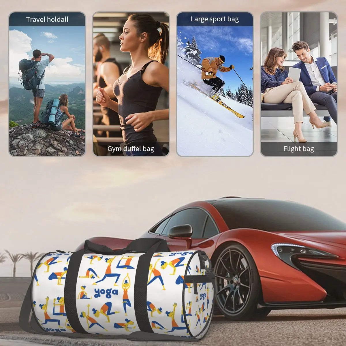 Stylish anime-themed gym bag with yoga girl design. Features shoe compartment, spacious interior, and durable build. Perfect for gym, travel, and fitness lovers