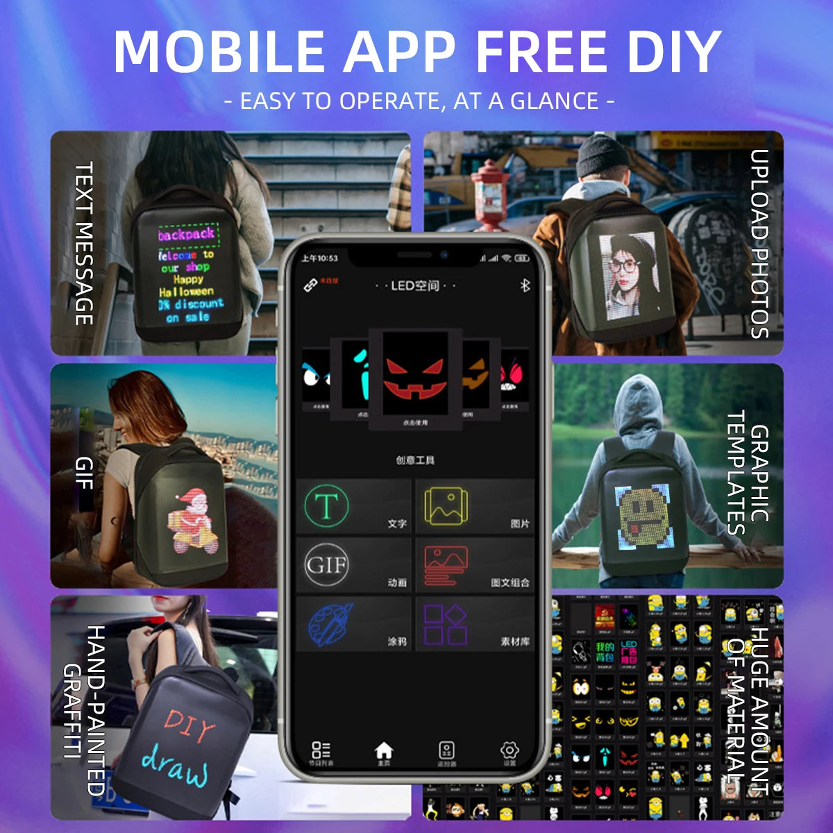 The Business Travel LED Display Laptop Bag combines modern technology and practicality. With its programmable LED screen, you can display ads, animations, or logos via smartphone APP — perfect for promotions, travel, or business professionals on the go.