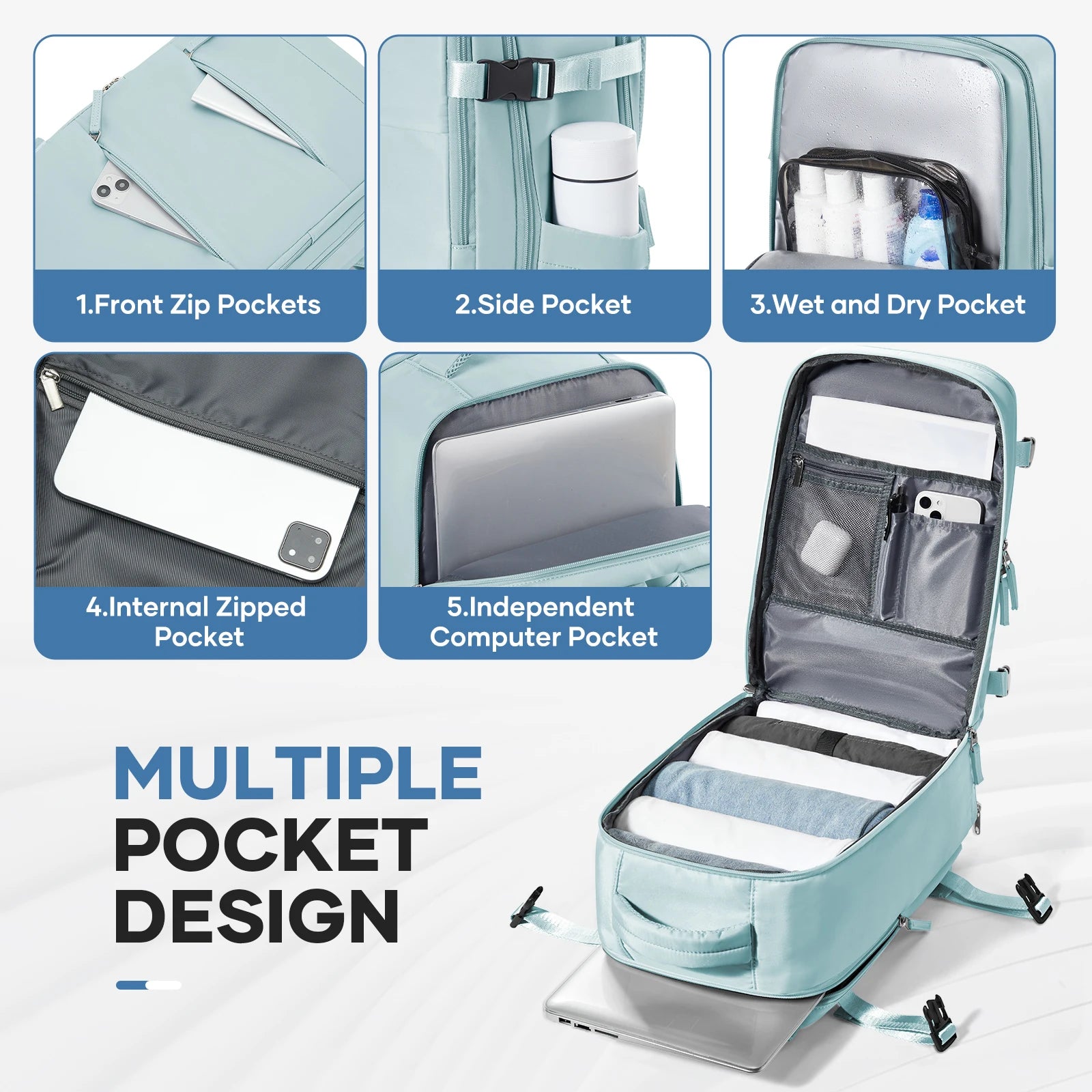 Airline-approved 40x20x25 cabin backpack with 15.6" laptop compartment—ideal for business, travel, and everyday use by men and women