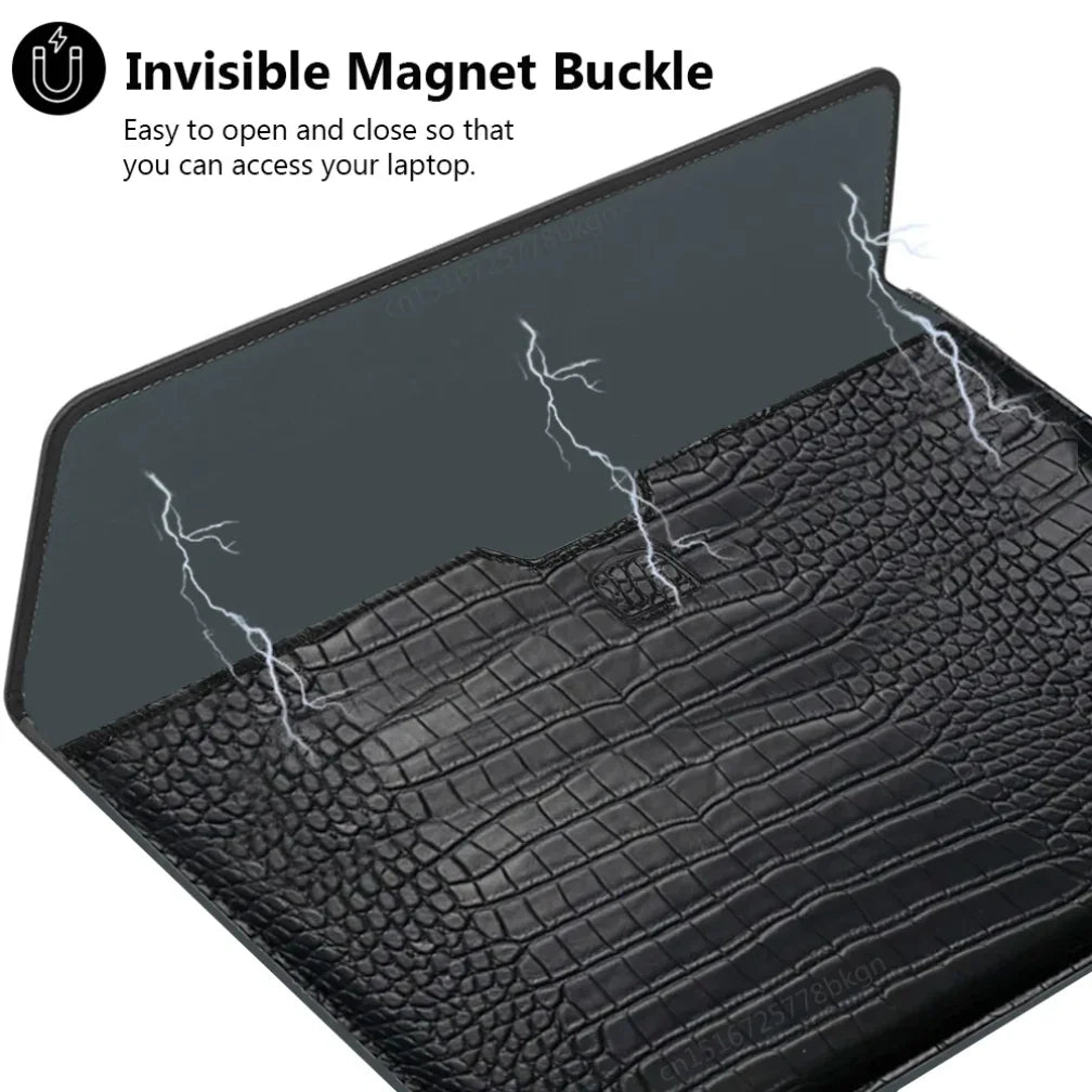 Premium crocodile texture leather flip case laptop sleeve. Stylish, slim, and protective cover designed to safeguard laptops from scratches and everyday wear.