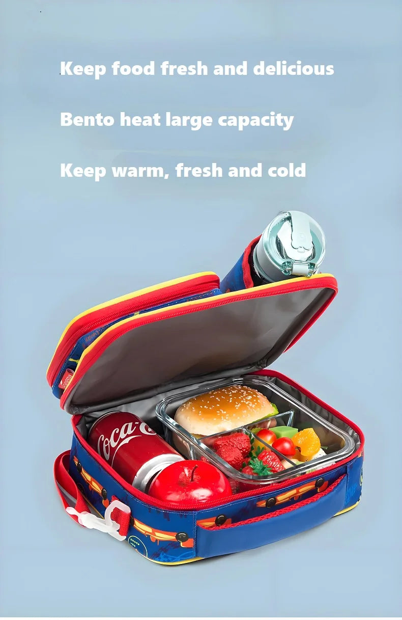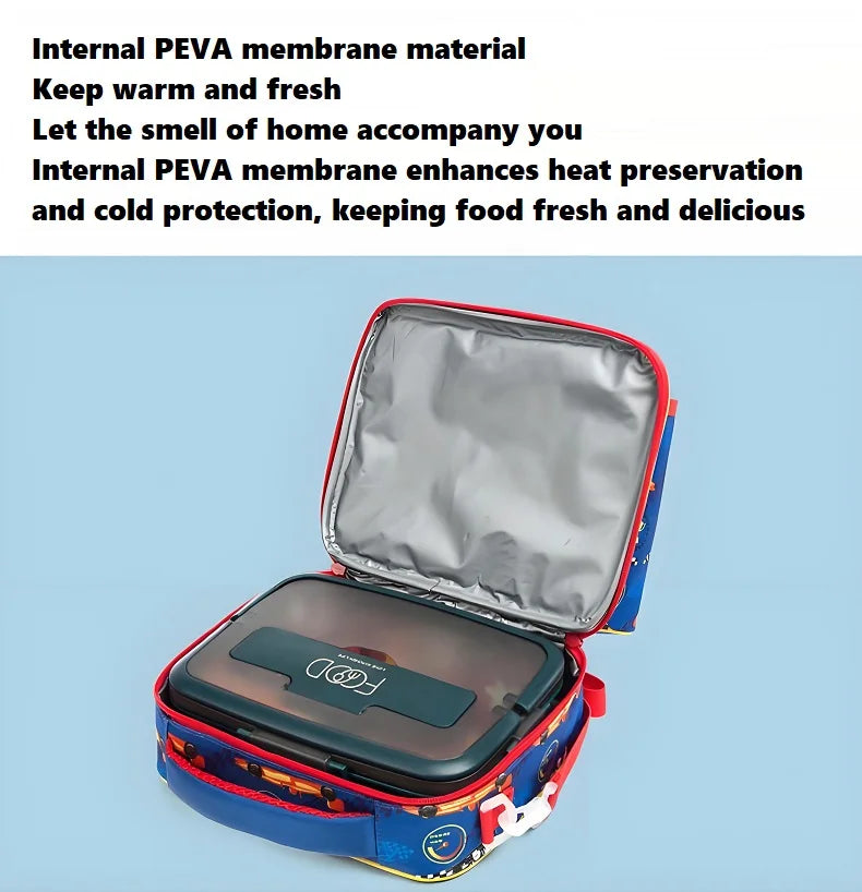 Multi-purpose thermal lunch bag for kids and moms. Features fun cartoon designs, an adjustable strap, and insulated interior for fresh meals on the go!