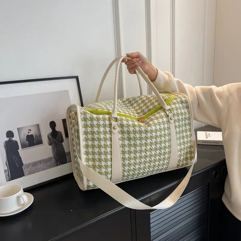 Stylish vintage-style duffle bag for women with large capacity and durable build—perfect for gym, travel, overnight stays, or weekend getaways