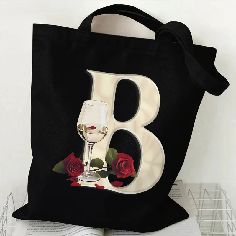 Add a personal touch to your outfit with this A–Z alphabet rose print canvas tote bag. Durable, lightweight, and perfect for daily shopping or casual outings.