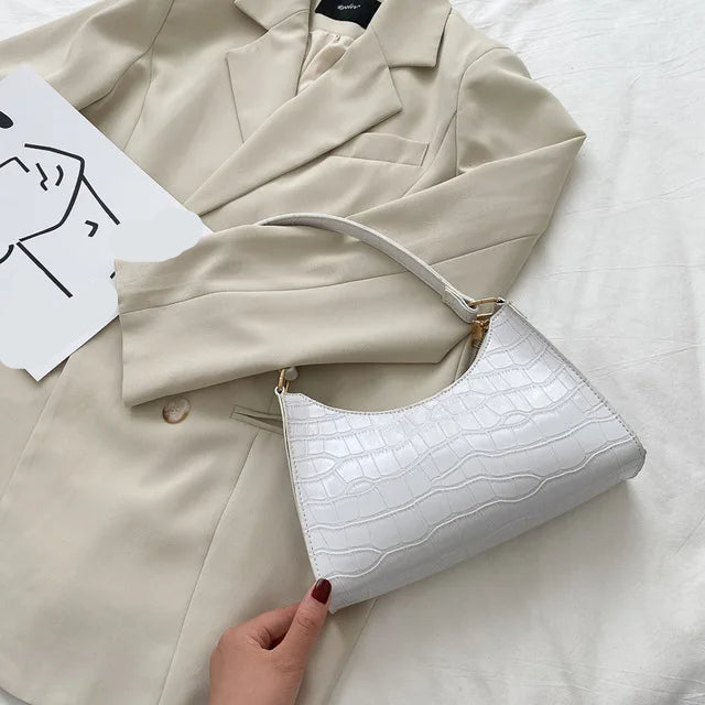 Trendy PU leather alligator-pattern handbag. Compact, stylish, and perfect as a small underarm messenger bag or daily purse for casual and office use.