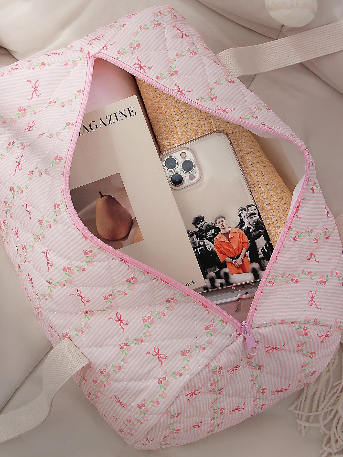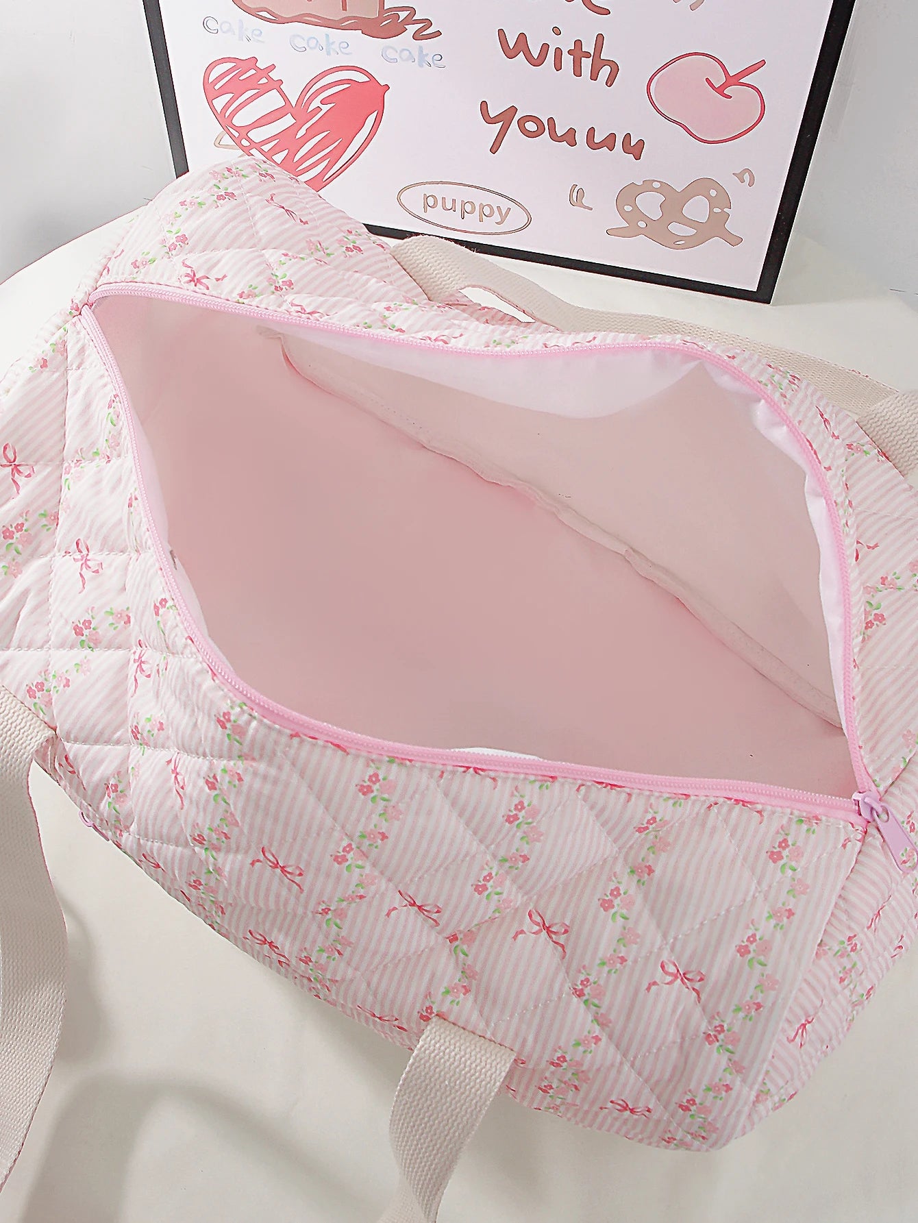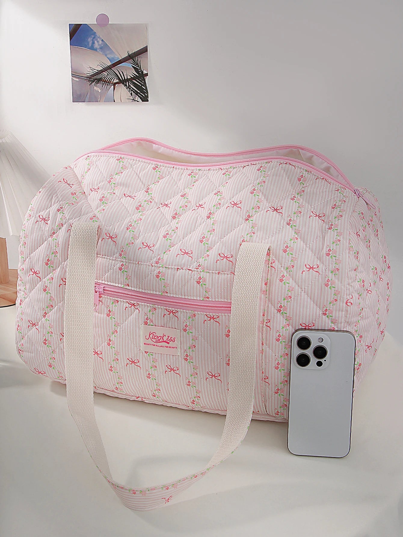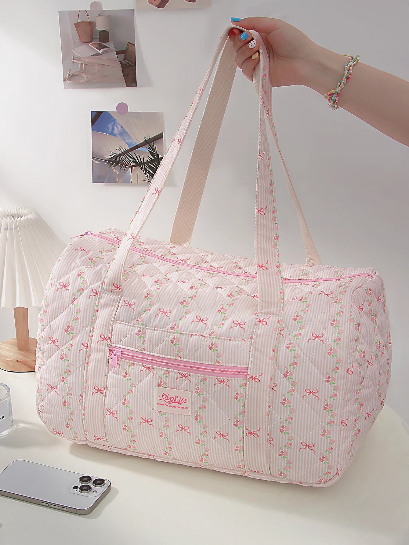 Stylish pink striped makeup bag with a large capacity. Lightweight, portable, and perfect for organizing cosmetics and toiletries while traveling or for daily beauty essentials