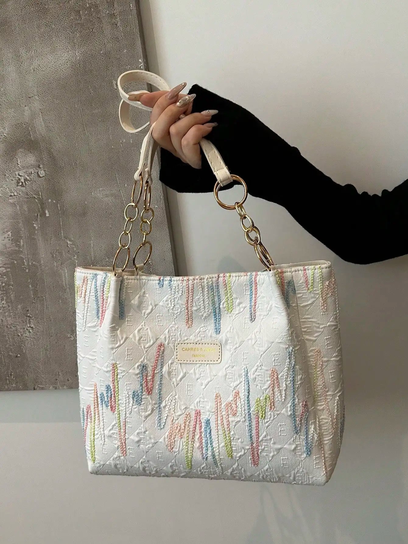 Trendy Korean-style plaid tote bag for women. Features a large-capacity design, perfect for daily commuting, shopping, or college. Stylish and functional shoulder handbag for everyday use