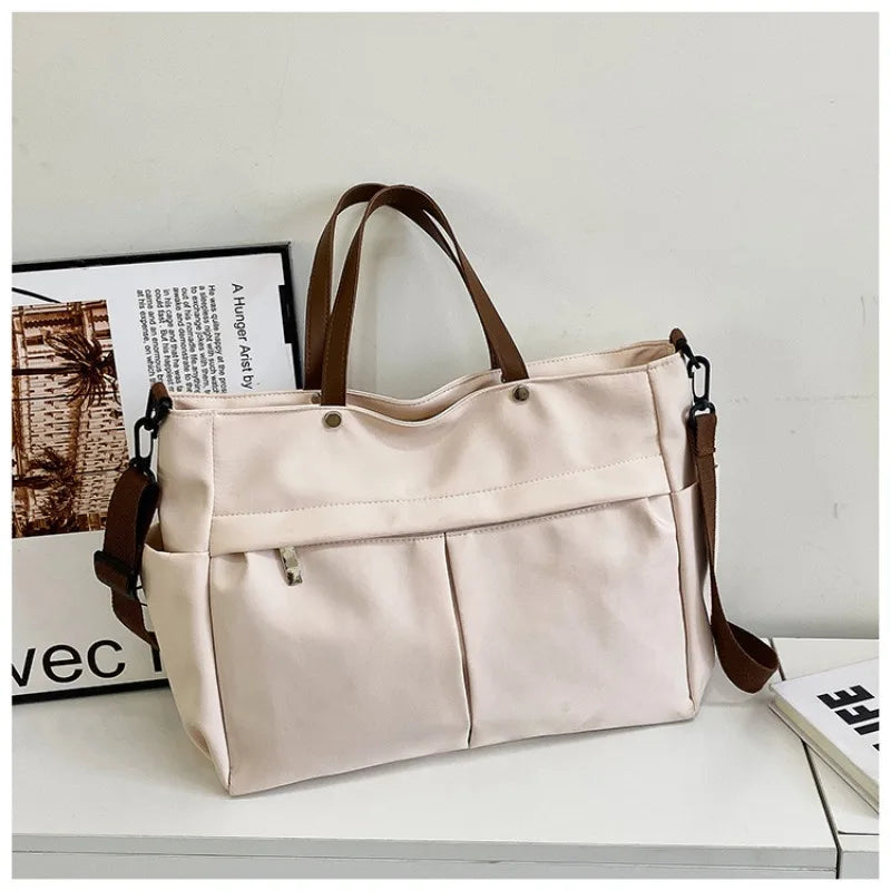 Lightweight nylon tote bag with crossbody and shoulder options. Minimalist design perfect for students, commuters, or daily errands. Durable, water-resistant, and easy to carry every day
