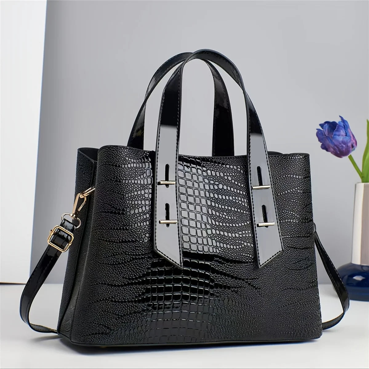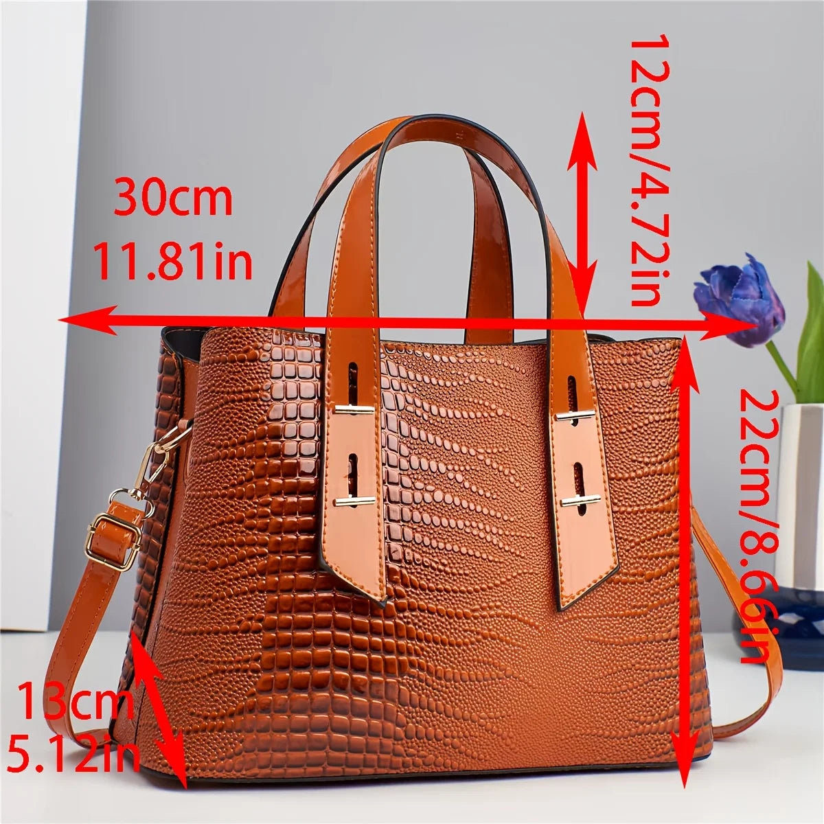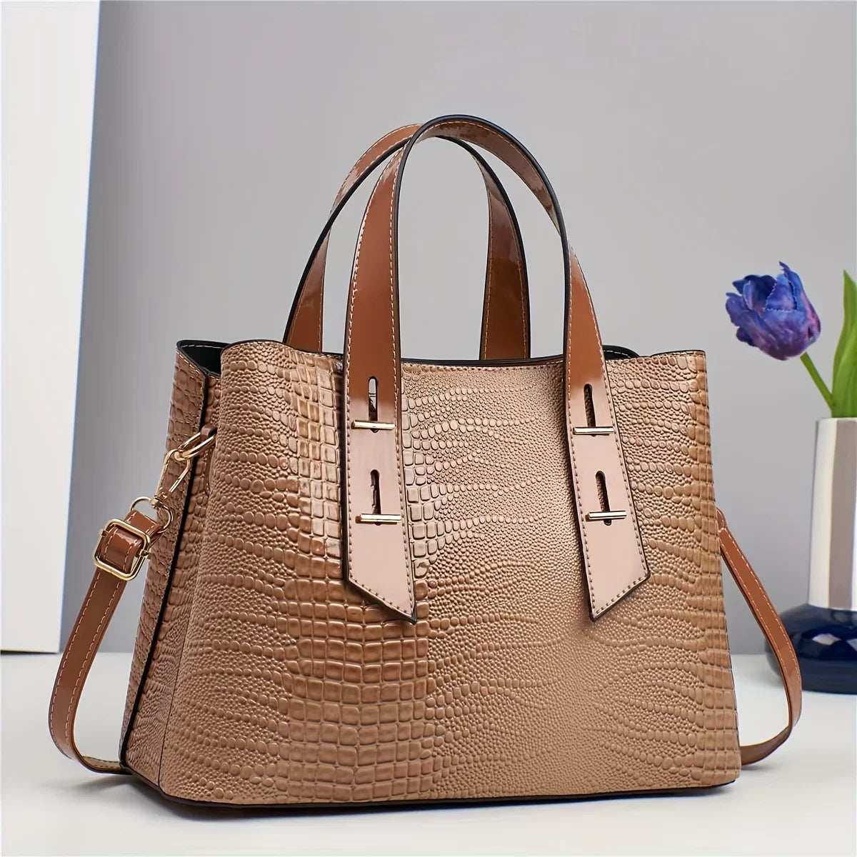 A stylish colorful alligator-pattern women’s handbag with a retro crocodile texture. Made from premium PU leather with tote, shoulder, and crossbody versatility for everyday fashion