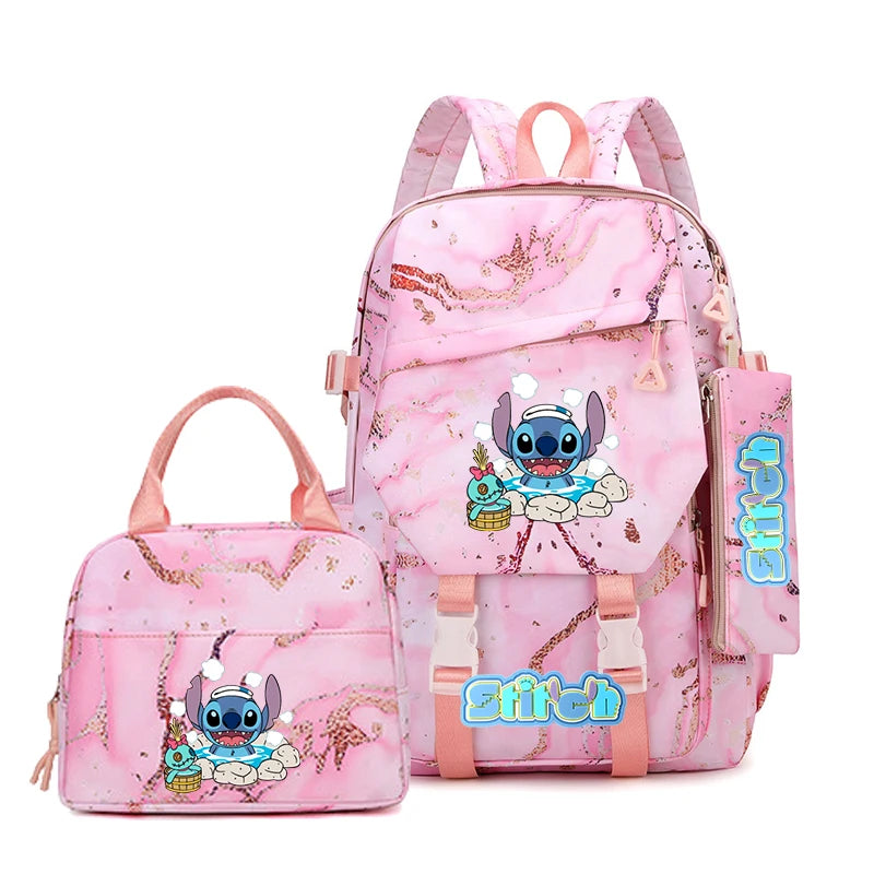 Adorable Stitch school Bag set with pencil case and foldable insulated lunch bag – perfect for everyday use or school