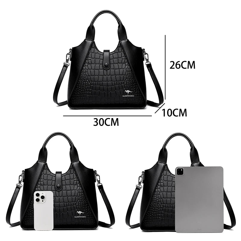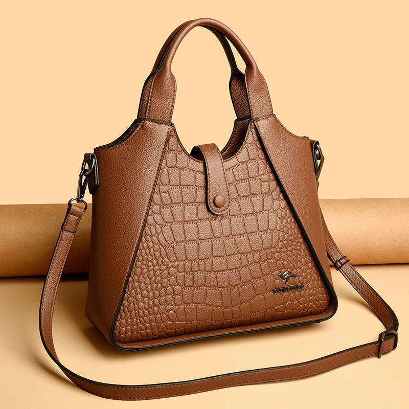 Chic and timeless, this soft leather tote handbag for women features a retro silhouette and solid color finish, perfect for shoulder or arm carry