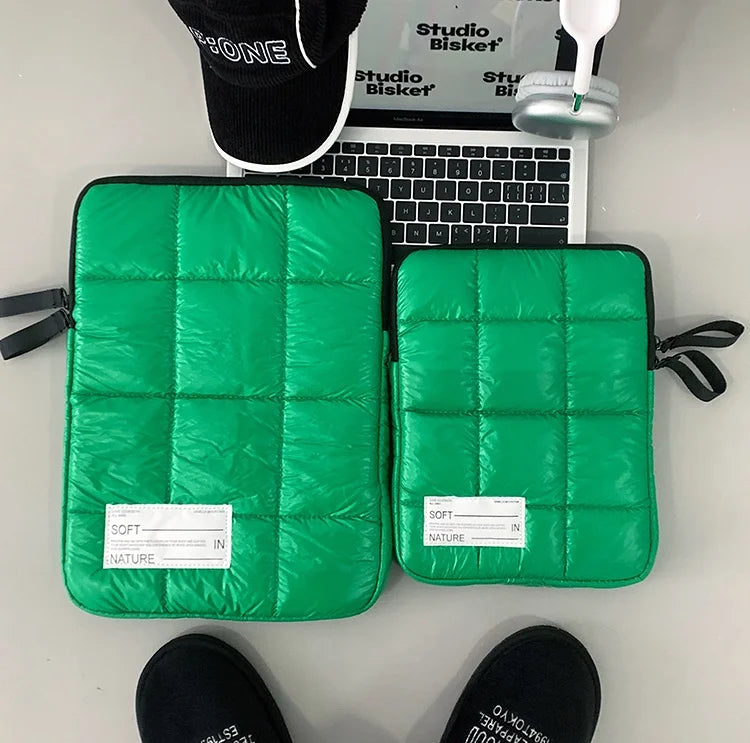 A sleek and lightweight laptop sleeve designed to protect your MacBook, iPad, or notebook from scratches, dust, and daily wear — ideal for travel, work, or study.