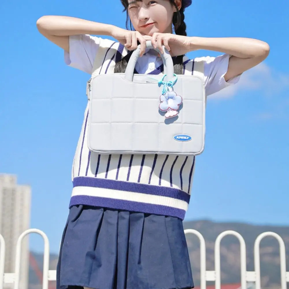 A stylish and protective laptop bag featuring a cute pendant design, waterproof exterior, and shockproof padding — ideal for keeping your notebook safe and fashionable anywhere you go.