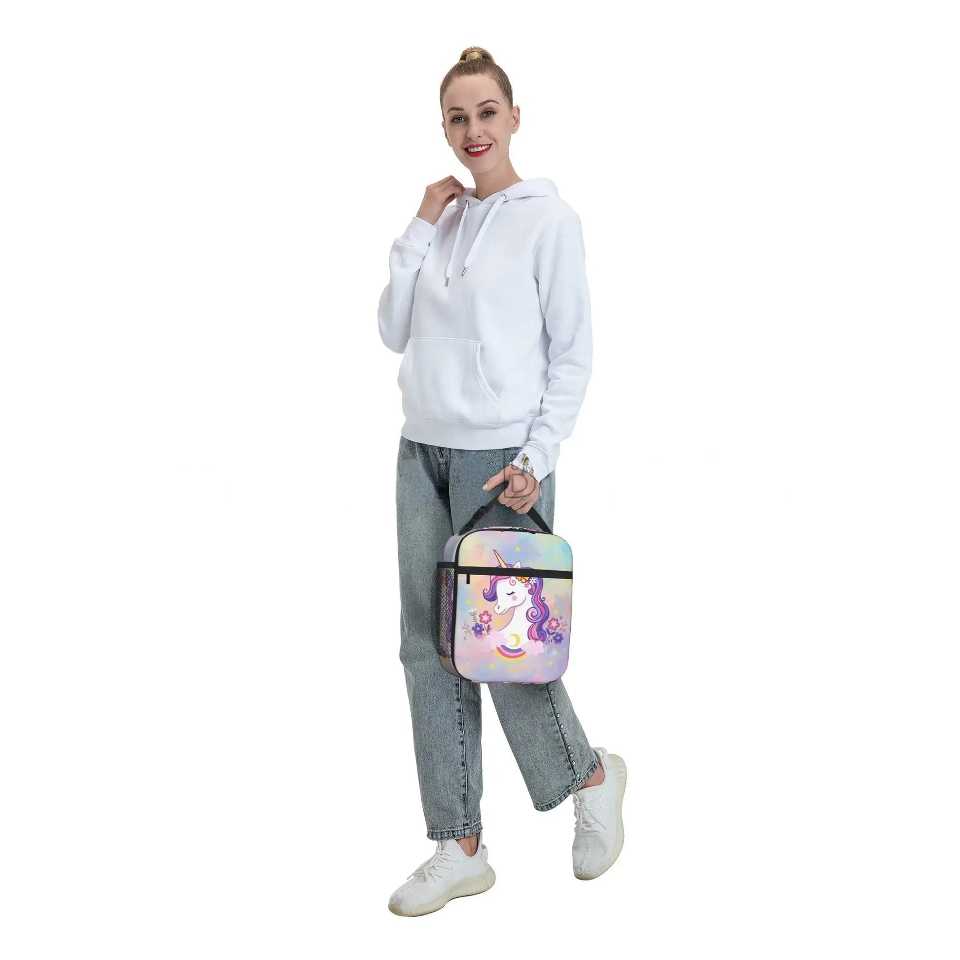 Stylish and reusable unicorn-themed insulated lunch bag. Waterproof, lightweight, and perfect for school, office, or daily outings