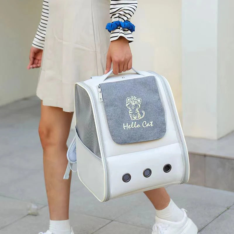 Triple-Sided Breathable Cat Backpack – Durable Double-Shoulder Pet Carrier