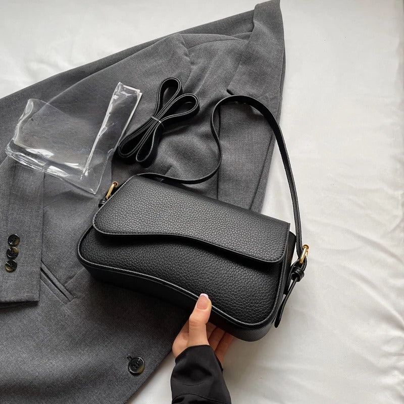 Trendy crossbody bag with an eye-catching irregular shape and red lychee pattern. A stylish shoulder satchel for women—perfect for casual outings, streetwear looks, or minimalist fashion