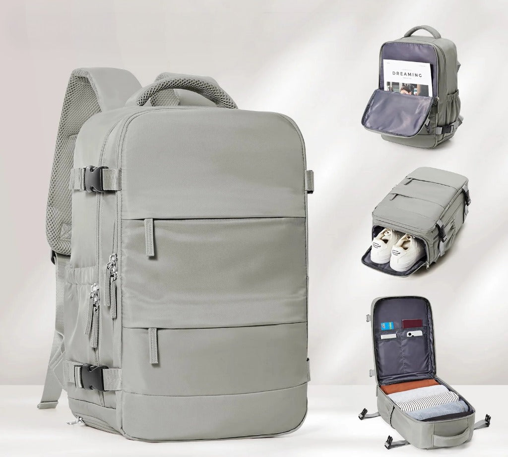 Versatile carry-on backpack designed for both men and women – ideal for business, college, and travel. Features waterproof material, a laptop sleeve, and cabin-size dimensions